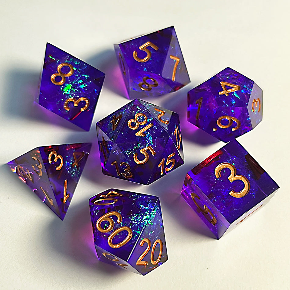 Handcrafted using ancient techniques, the DND resin dice are the perfect gift for you. The rich fillings and colours make the dice shine, and rolling them will be got an extraordinary experience.