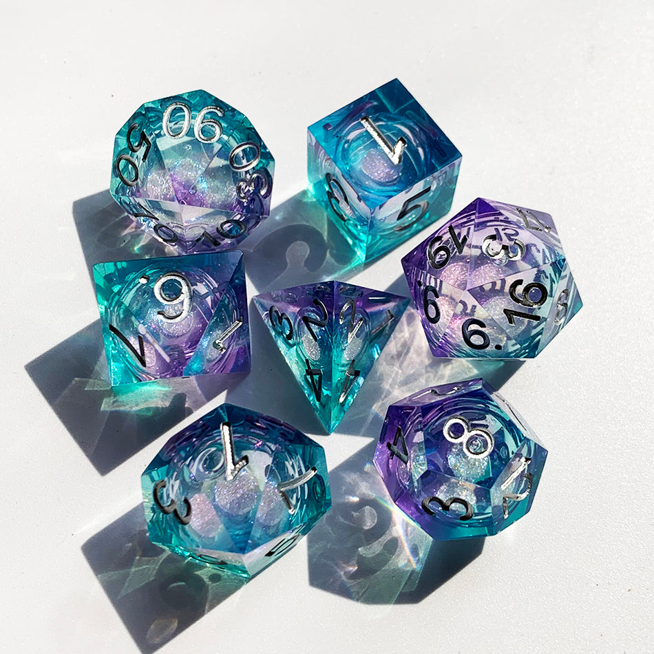 ❤ Liquid core Dice Set: One set dice total 7 pcs including D4, D6, D8, D10, D12, D20 and D%