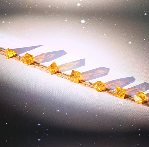 AUSPDICE DND Dice, DND Dice Set, Dungeons and Dragons Dice, Sharp Edge Dice with Beautiful Inclusions (Citrine Color)