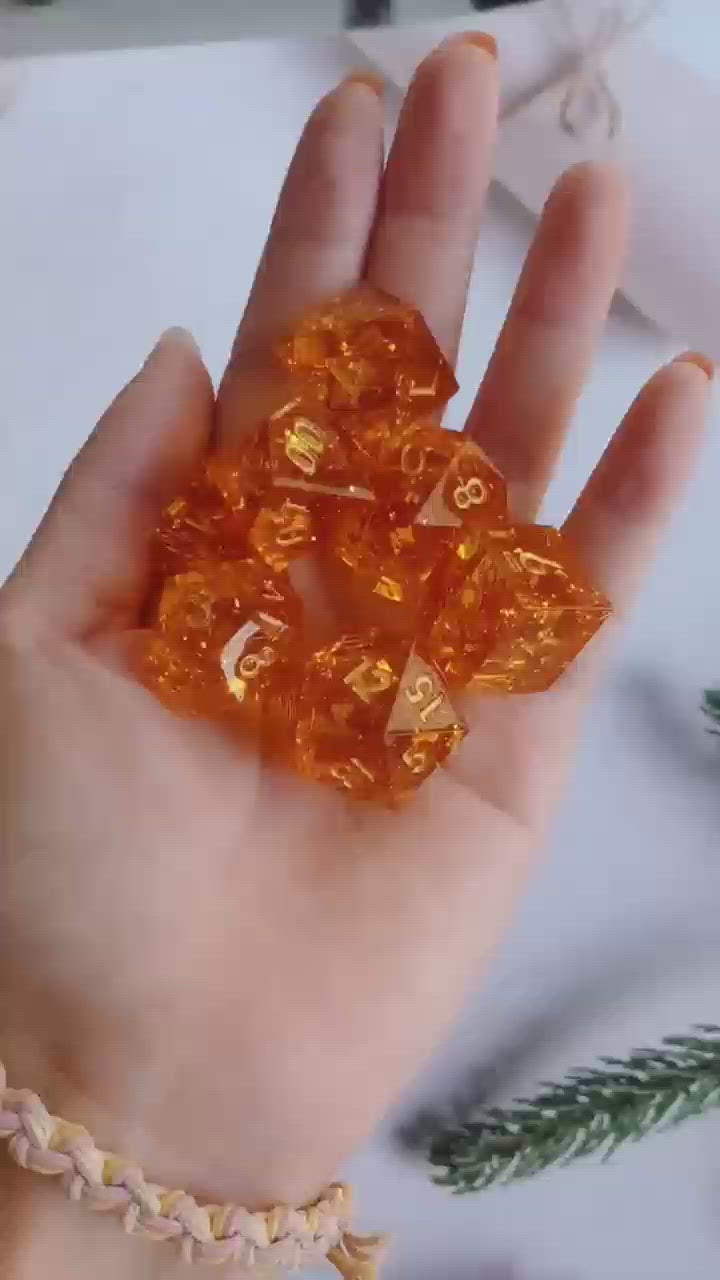 Handmade Dungeons and Dragons Dice, Sharp Edge Dice with Beautiful Inclusions (Citrine Color)