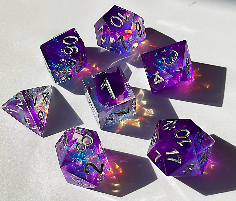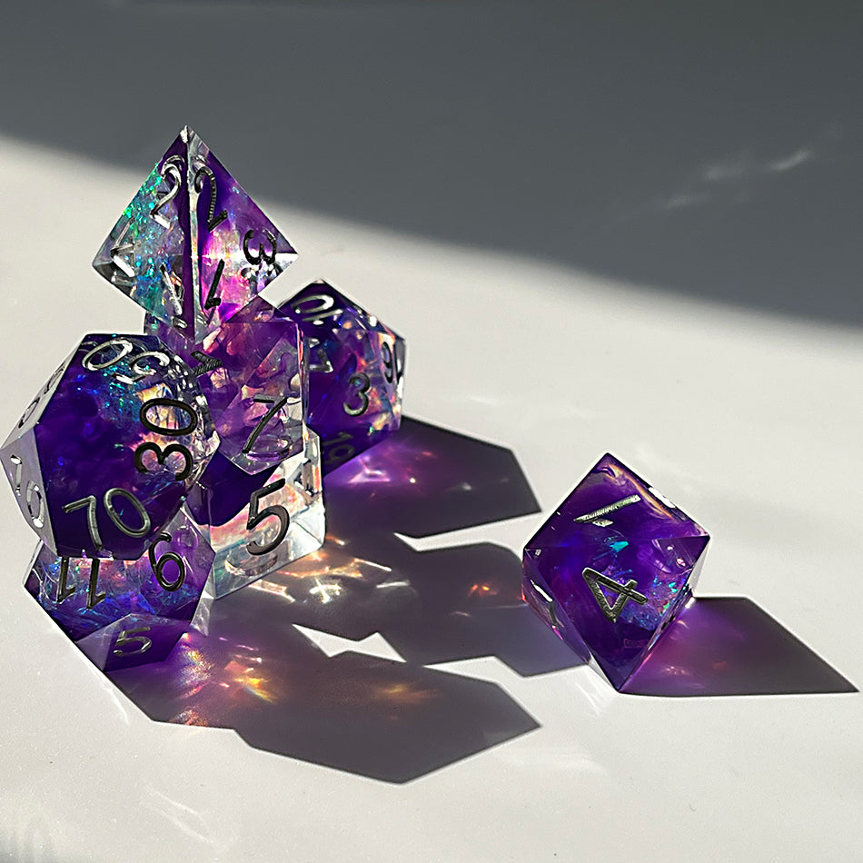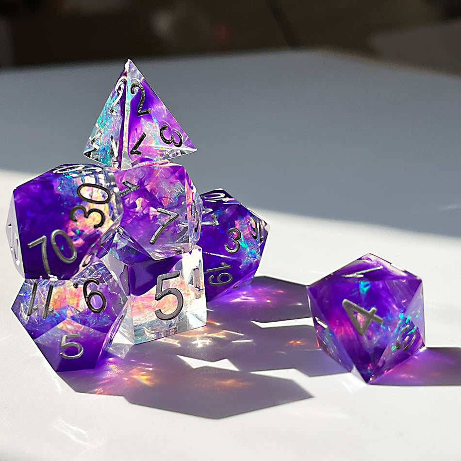 Transparent Handmade Purple Transparent Dungeons and Dragons dice Set D&D