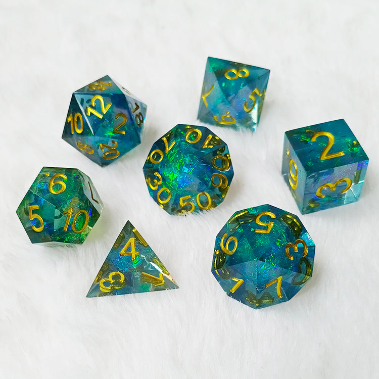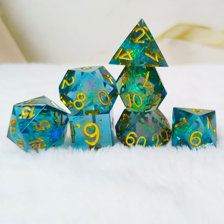 Handmade resin sharp edge ttrpg polyhedral dice set