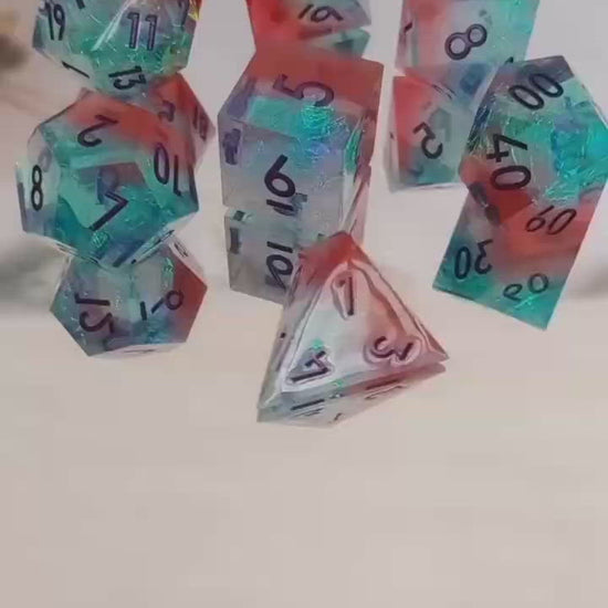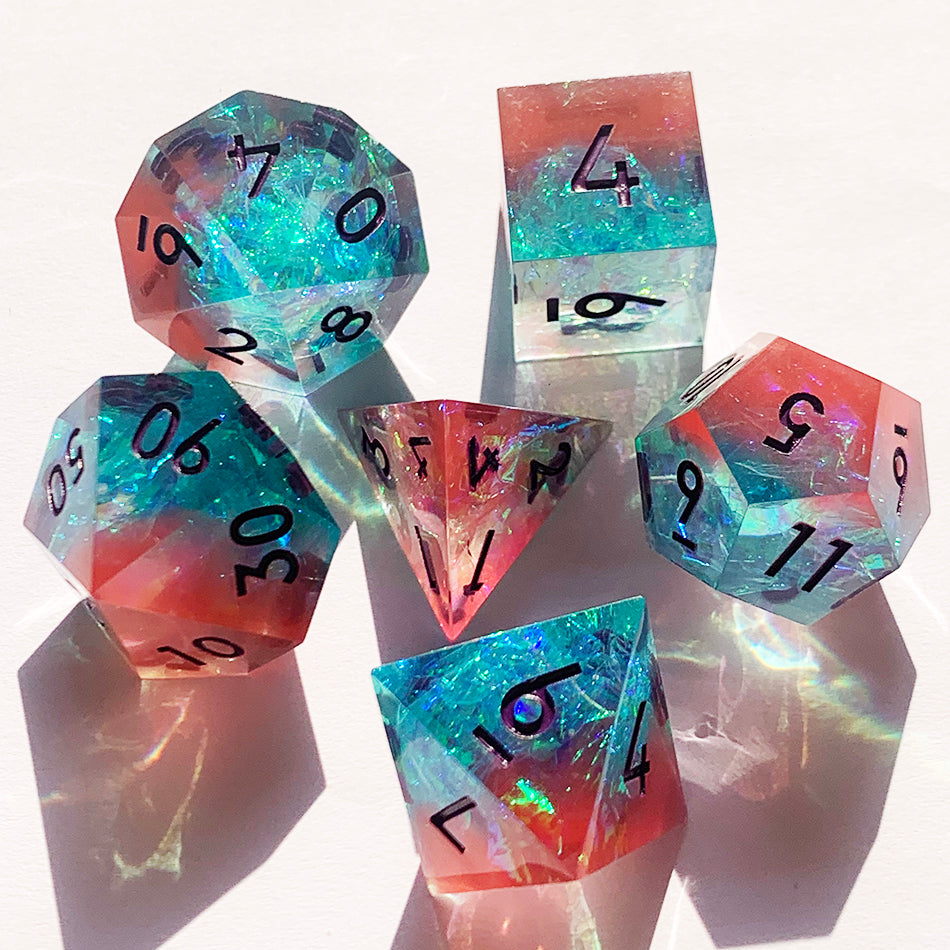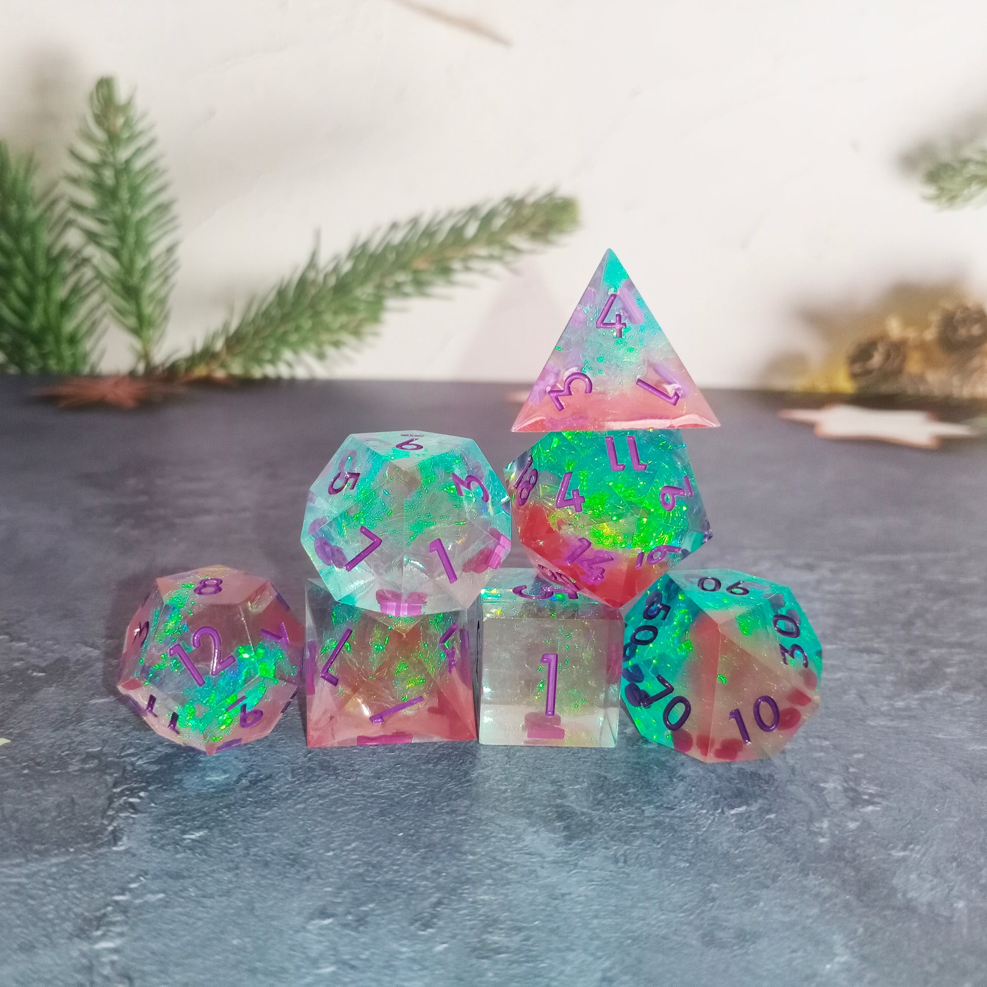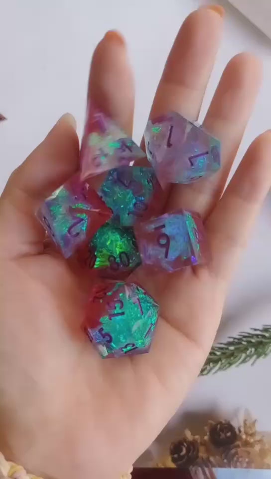 - 🎲DND Dice 7PCS: Show off your gaming skills with our unique Mirror-like polish with stunning inclusions style dungeons and dragons dice. Let these resin polyhedral dice set decide your destiny: the D4, D6, D8, D10 (double precision), D12 and D20.